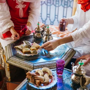 Le thé à la menthe est la boisson nationale, symbole de l’hospitalité. Accepter un verre est un geste de respect et une porte ouverte vers la conversation.