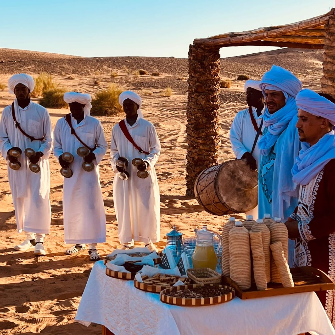 • Noches en campamentos de lujo bajo un cielo estrellado, con cenas tradicionales bereberes.
